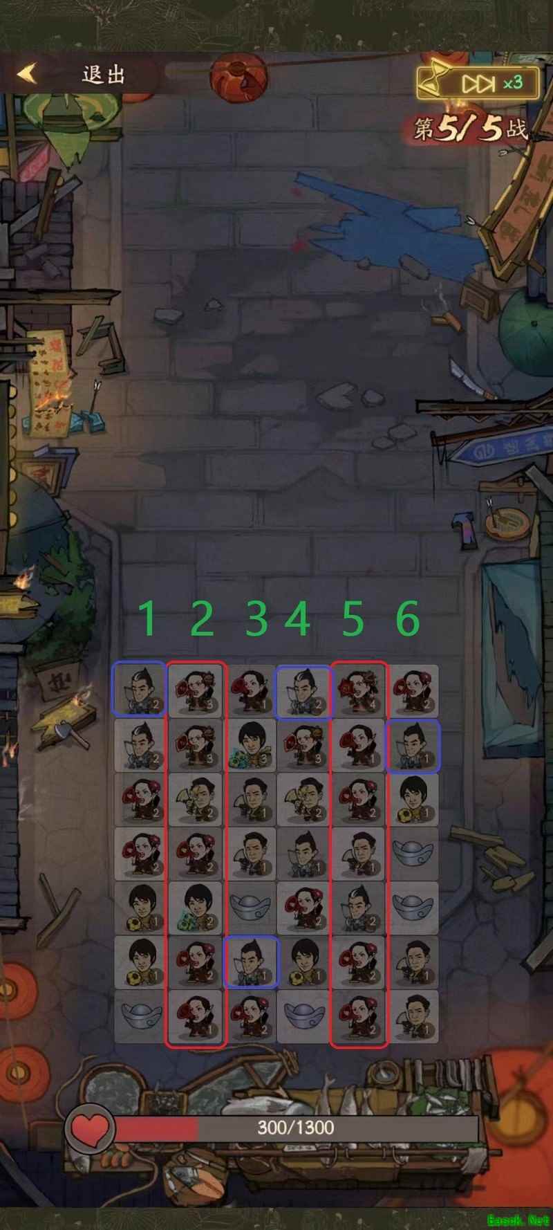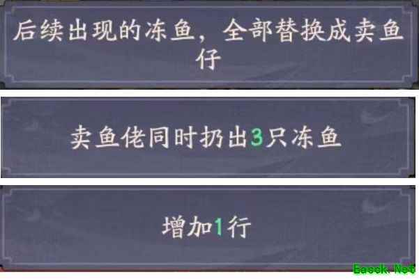 全部替换为冻鱼仔,携带3只鱼,新增一行。玩法核心在于提升好汉的输出强度和频率,同时加快地痞的速度。