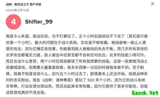 在Metacritic网站上,《战神:斯巴达之子》的用户评分为7.4分,是该系列中最低的。不过,这个分数也并不算差,只是一般水准。但这可是《战神》,所以8分以下在玩家眼里其实就是口碑不太好的作品。