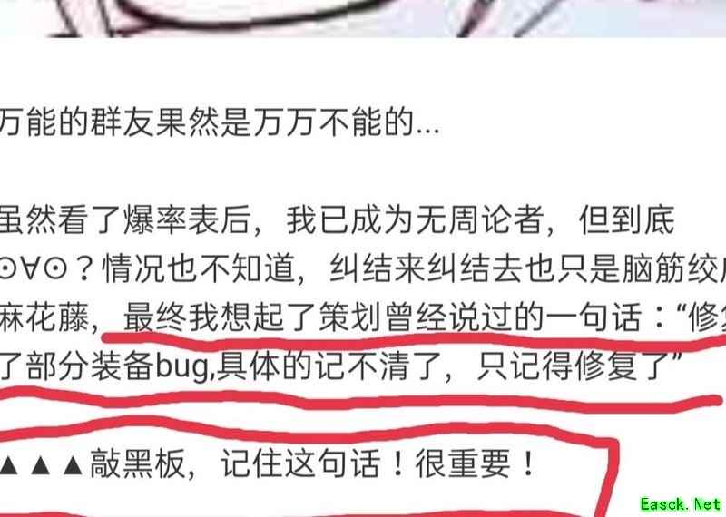 尽管查看爆率表后我已不再纠结周常,但现状究竟如何仍不清楚。反复思量只觉思绪混乱如麻。最终想起策划曾提过一句:修复了部分装备的bug,具体内容虽已模糊,但这句话却隐约浮现心头。