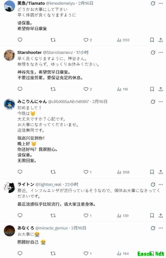 神谷英树身体抱怨烧到38度 玩家:别太累多休息!