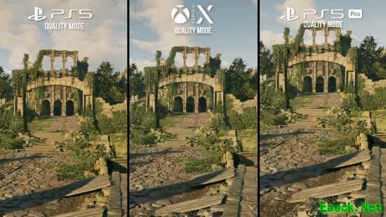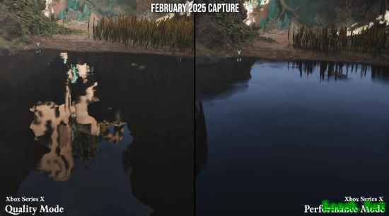 性能模式下,各版本的差异更为突出。与XboxSeriesX相比,PS5会减少远景阴影,并略微简化树叶细节。分辨率缩放也更偏向微软阵营:测试记录显示,在部分场景中,PS5的运行分辨率为972p,而XboxSeriesX则支持1080p。