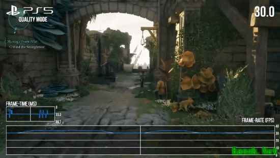两款主机均使用动态分辨率缩放技术,推测搭配FSR2,预计内部目标分辨率为1440p。其中,XboxSeriesX更稳定地达到这一分辨率,而PS5则可能略低于该数值。画质模式下,XboxSeriesX的性能更优,能维持更平稳的33毫秒帧时间曲线,而PS5尽管也能保持30帧每秒的帧率,但帧时间波动更明显。