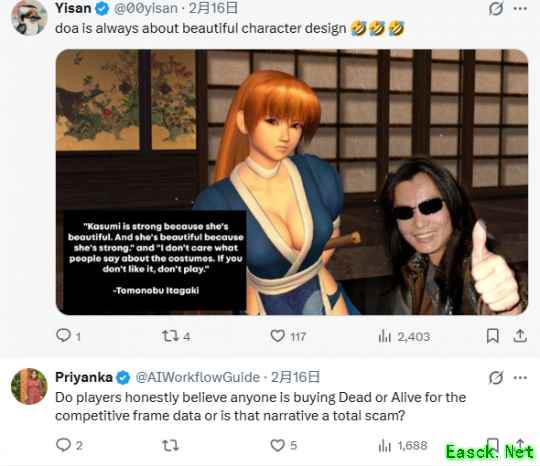 评论区有人表示:“霞之所以强大,是因为她很美;她之所以美,是因为她很强大。我不在乎别人对服装的看法。如果你不喜欢,就别玩。”“《死或生》一直都是漂亮角色设计,这是本作核心特色。”“这类玩家很无趣,DoA正是因此而出名,同时也受到玩家喜爱。”“漂亮性感的角色更受欢迎。而且由于大多数玩家都是男性,吸引他们有助于提升销量。”