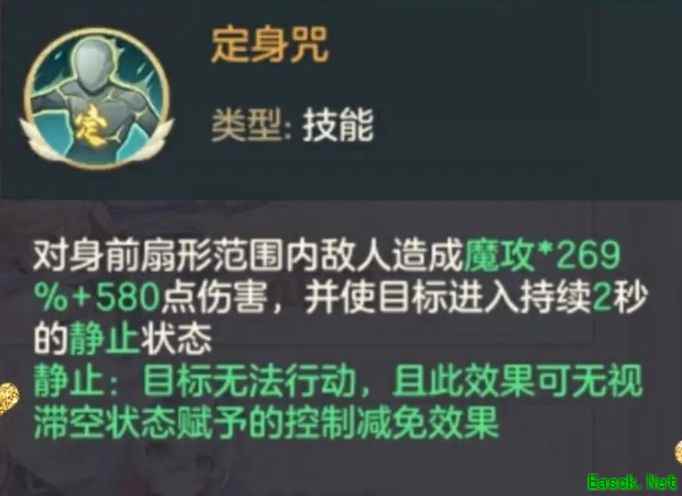 定身咒是炎斗流的强力控制技能,带有百分百吸血效果,在静止状态下可打断枪炮师与战锤终结者的大招释放。