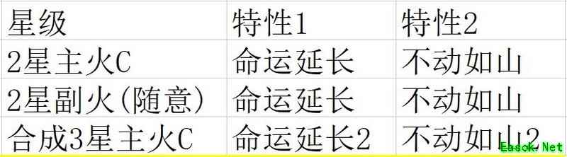 主火C在四星时即可完全解锁三级命运延续、防御强化与稳如泰山效果。