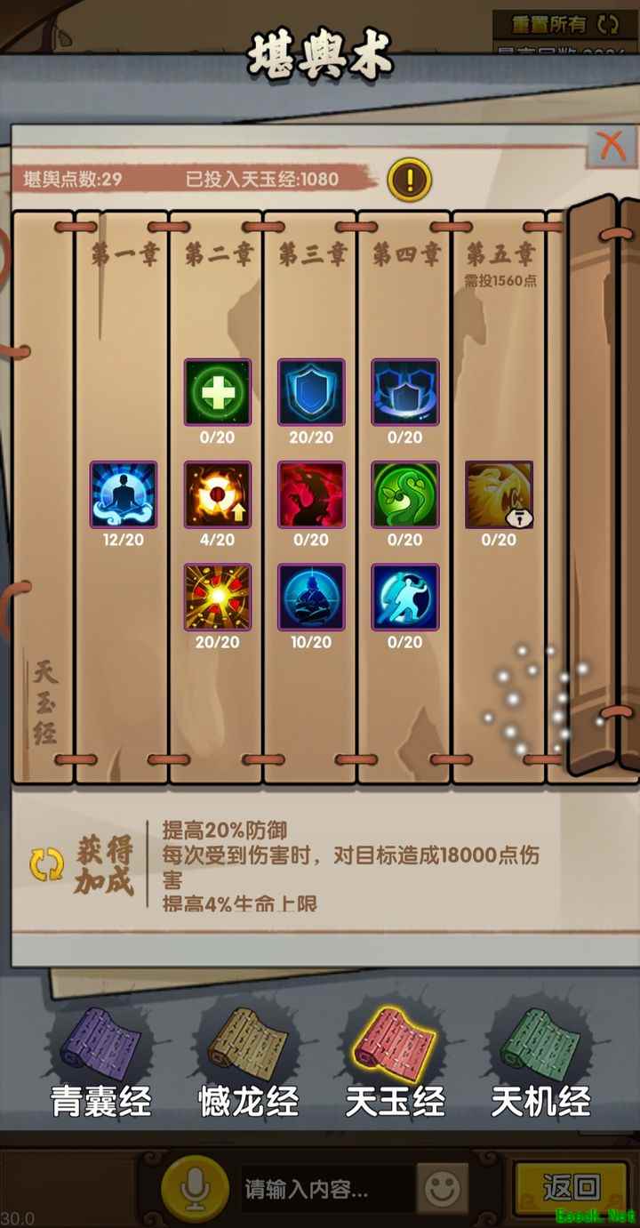 天机经加点建议:先将护盾升至12点,开启第二层;爆裂点满20点,治疗加4点后开启第三层。回春技能加到14至18点之间即可,还魂点至8点后开启第四层。此时暂停天机投入,转而优先提升天玉的防御属性,为后续发展打好基础。