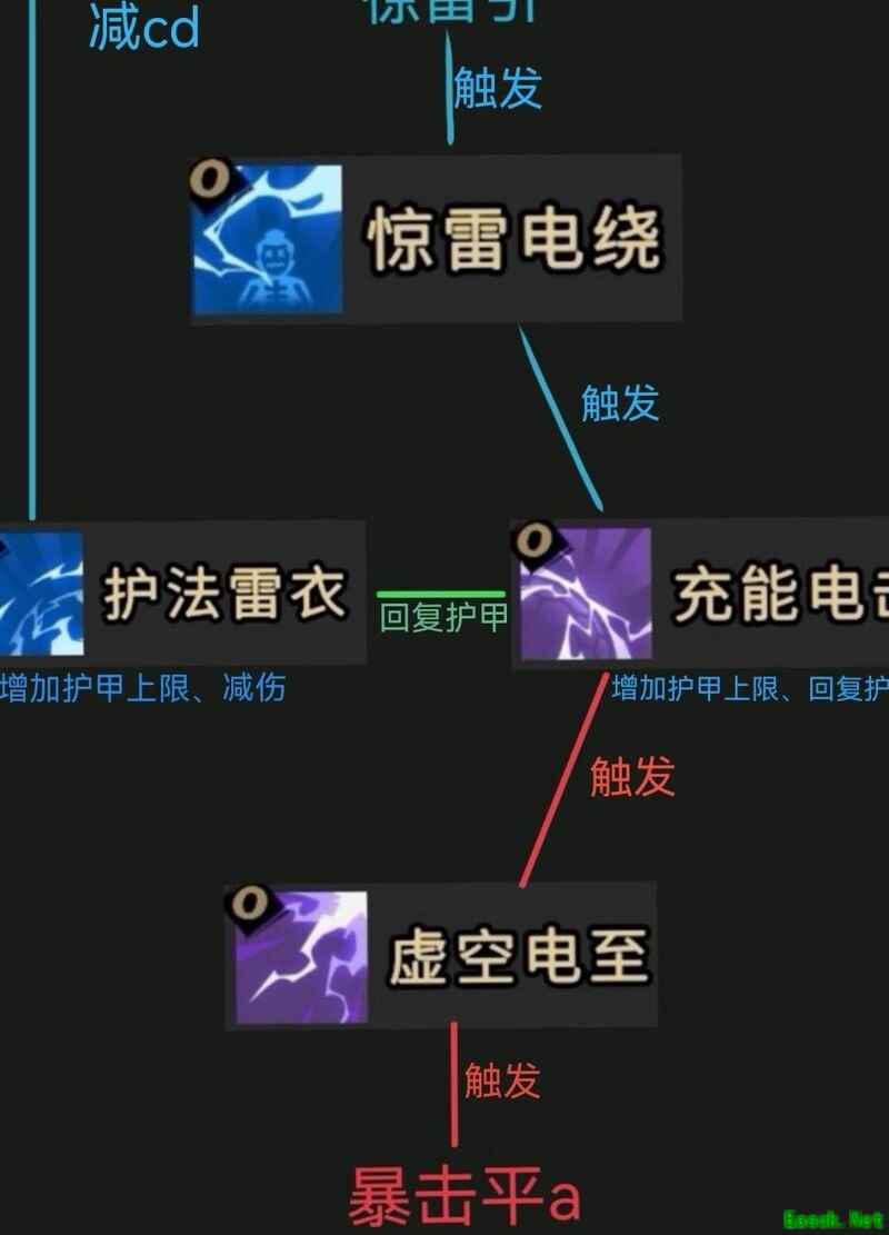 常有人认为虎子虽输出高但身板脆弱,团本打boss时往往反复倒地,稍受攻击便难以支撑。然而只有存活才能持续输出,因此觉醒选择不能只追求伤害,还需兼顾生存能力。其中四大觉醒尤为关键:护法雷衣可提升护甲上限并降低所受伤害;惊雷电绕在惊雷引期间触发闪电效果;充能电击能在闪电触发后恢复护甲并进一步提高上限;虚空电至则可在暴击时引发闪电,增强续航与防护。