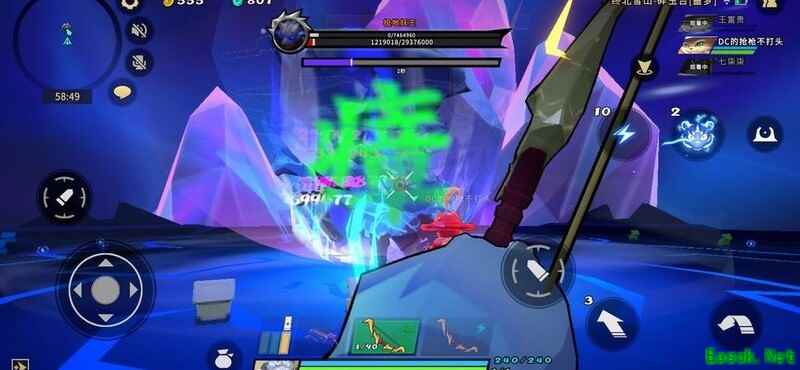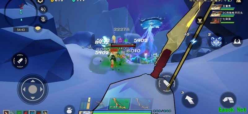 击碎石人召唤的小石块,阻止其破坏石柱,避开土龙尾部喷出的毒球。
