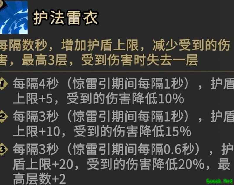觉醒仅获一级护法雷衣,未得三级。