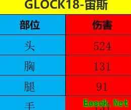 整理后的GLOCK18-宙斯装配满伤戒指的完整伤害数据如下所示。