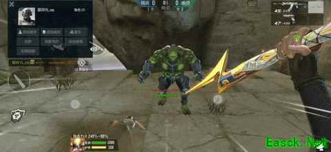 近战武器雷霆权杖—宙斯,外形酷似电影爱与雷霆中宙斯所持的雷霆霹雳,金色Z形刀身设计精美,质感出众。其不仅造型威猛霸气,实战表现同样亮眼,在满伤戒指加持下,重击头部可造成2392点伤害,命中胸部或手臂也能打出1196点输出,整体伤害表现十分出色。