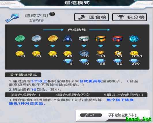 通关1-10后解锁忘却的遗迹(纯三消玩法),每周任务需完成5局挑战,失败也计为一局,可通过反复进出快速达成任务目标。