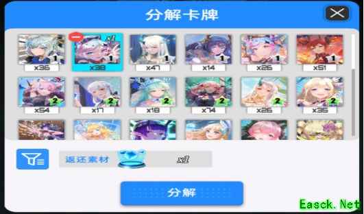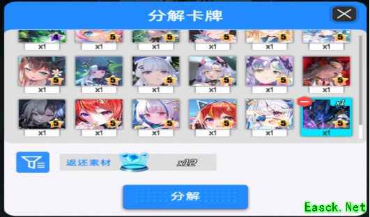 在游戏中,分解功能有两个入口:五维商店中的邮寄实体卡选项下的批量分解,以及基站的锻造模块中的分解功能。这两个入口的分解数量是独立计算的。当你获得一张卡牌后,两个入口中对应的卡牌数量都会各自增加一张。