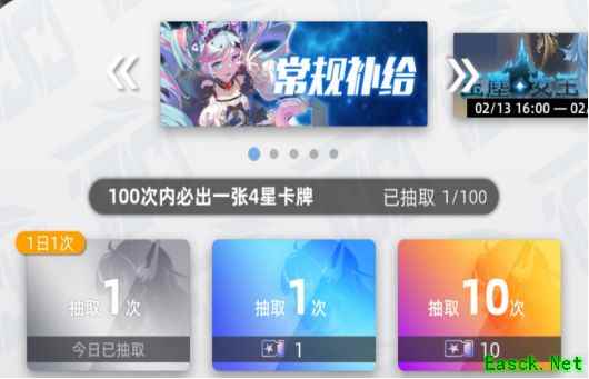 主界面每日可进行一次常规抽卡。