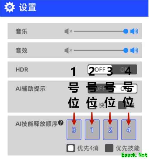 自动技能顺序为4231,优先释放4连击。