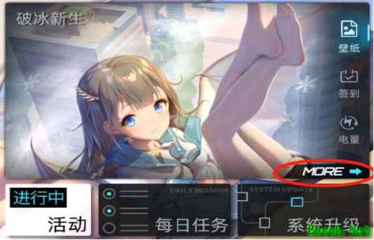 主界面电量下方设有MORE选项,点击后可使用贡献卡兑换主题、壁纸及决斗王动态卡,亦可通过设置中的主题选项进入相应页面。