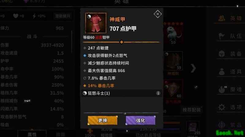 以关羽为例,套装要求强健体格2级,按图配置装备与词条即可轻松抗住120箱子,无需魔魂加持,操作简单,效果显著。
