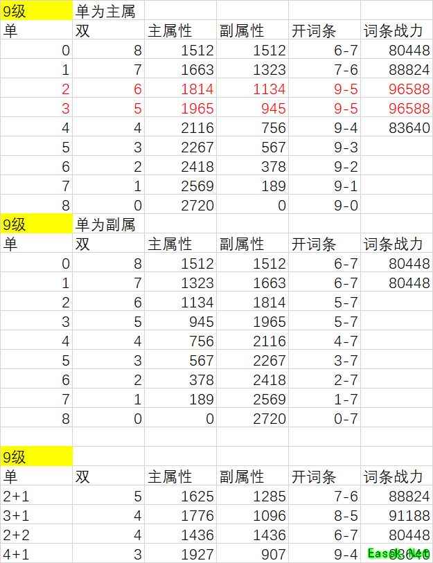 主副词条最佳为9-5