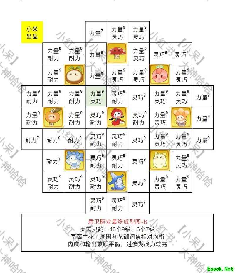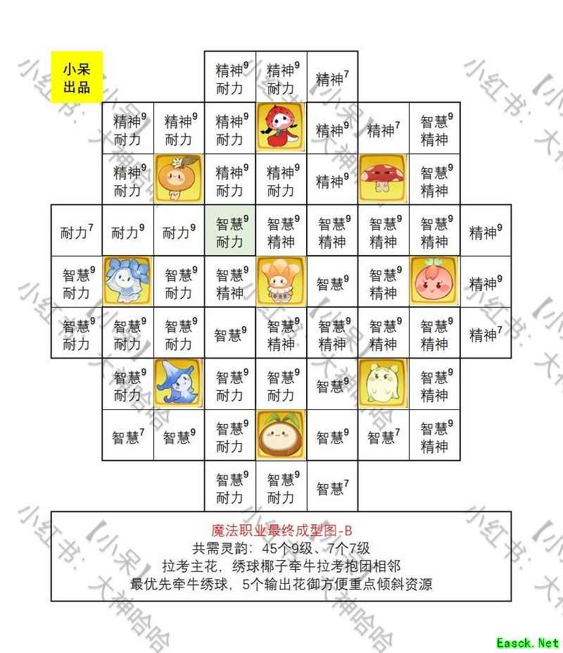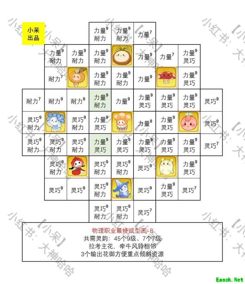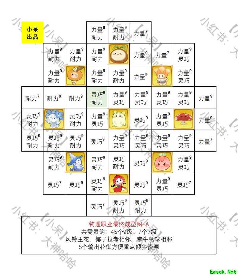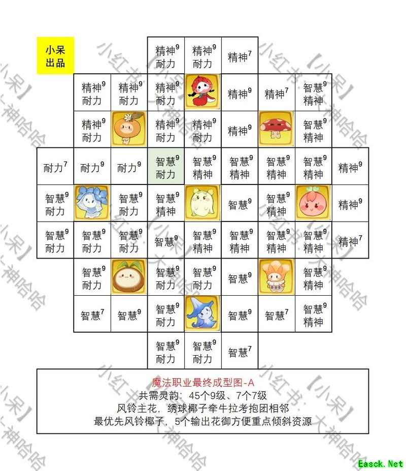 以下是花御的摆放方法,9个花御分布在9个格子中,共有36万种排列组合,从中挑选出6种最强的组合方案供参考。