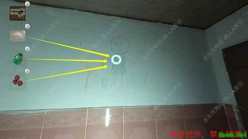 按照墙上提示,将电线连接到对应灯泡位置,左列为灯泡,右列为相应电线。