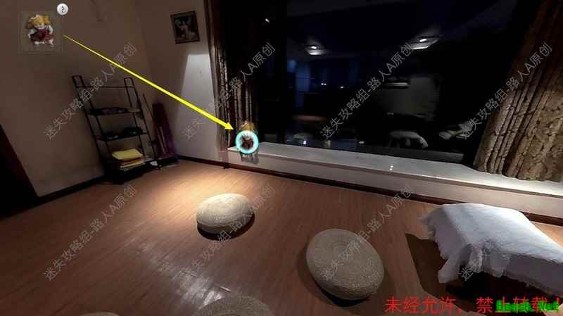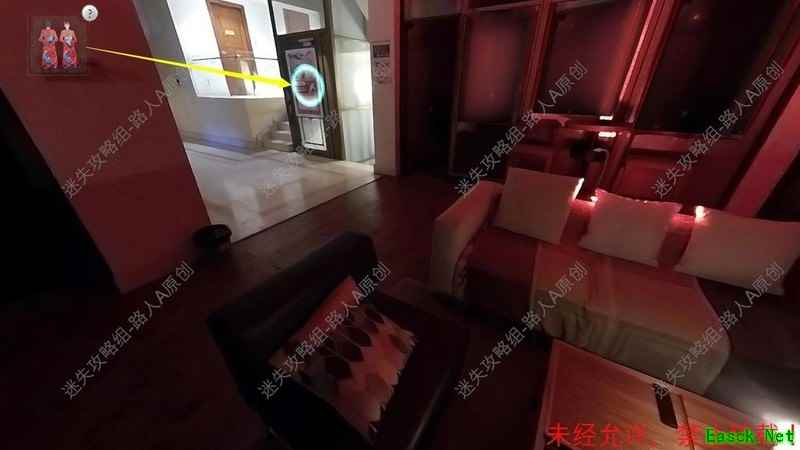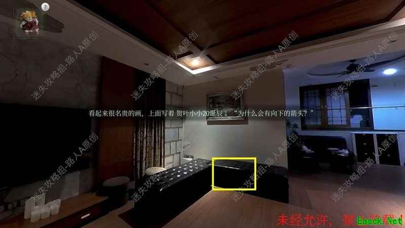 点击墙上挂画,按箭头指示点黑色沙发,获取。
