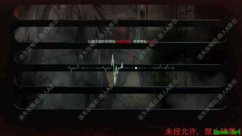 按照提示,心跳剧烈时长按鼠标左键,平稳时松开,待怪物完全离开画面后再行动。