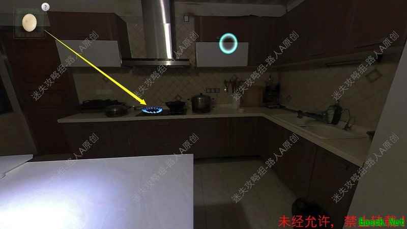 点击闪烁的圆圈,依次拾取路边的碗、通告、门牌号和指示箭头。