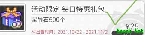 如果你的账号已经抽到多个强力的4星或5星角色,如老男人、光之王子、船长、雷龙等,又舍不得弃坑,可以考虑连续三天购买商城中每天限购一次的25元礼包,该礼包包含500颗原石。注意别误买下方同价位的7天礼包,虽然也是25元,但只送7个星体碎片,不送原石。若你没有攒够600碎片冲击天井的计划,买错将非常不划算。