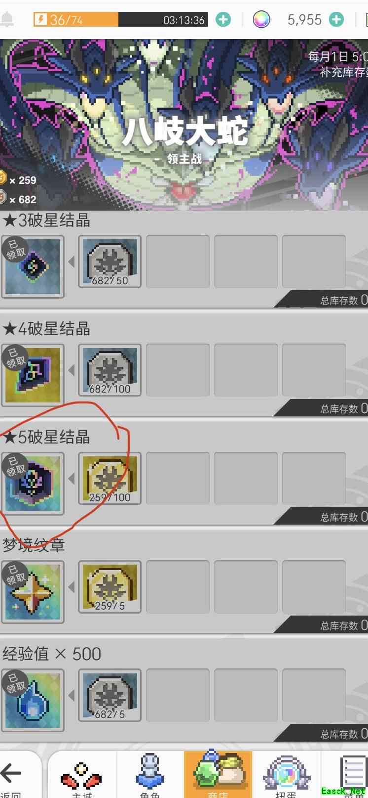 即使没有崩坏域武器和梦境材料,也可消耗体力与互相关注的好友组队挑战共斗大蛇。我更倾向用好友体力刷取。建议优先刷齐大蛇代币,兑换每月限购一次的100币五星破星道具,该道具稀有珍贵,价值稳定,不容错过。