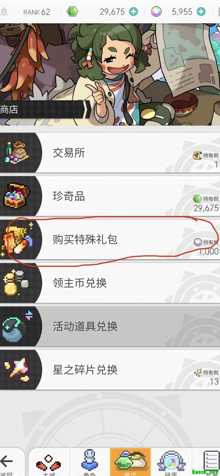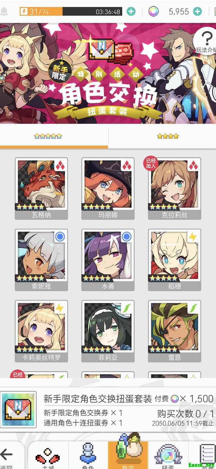 进入商店选购新手专属礼包,参与角色兑换扭蛋活动。