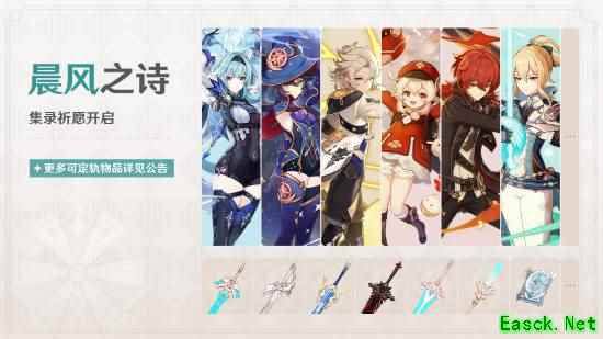 此外,「月之五」版本上半期也将开放集录祈愿「晨风之诗」,多位蒙德角色及武器将会加入。