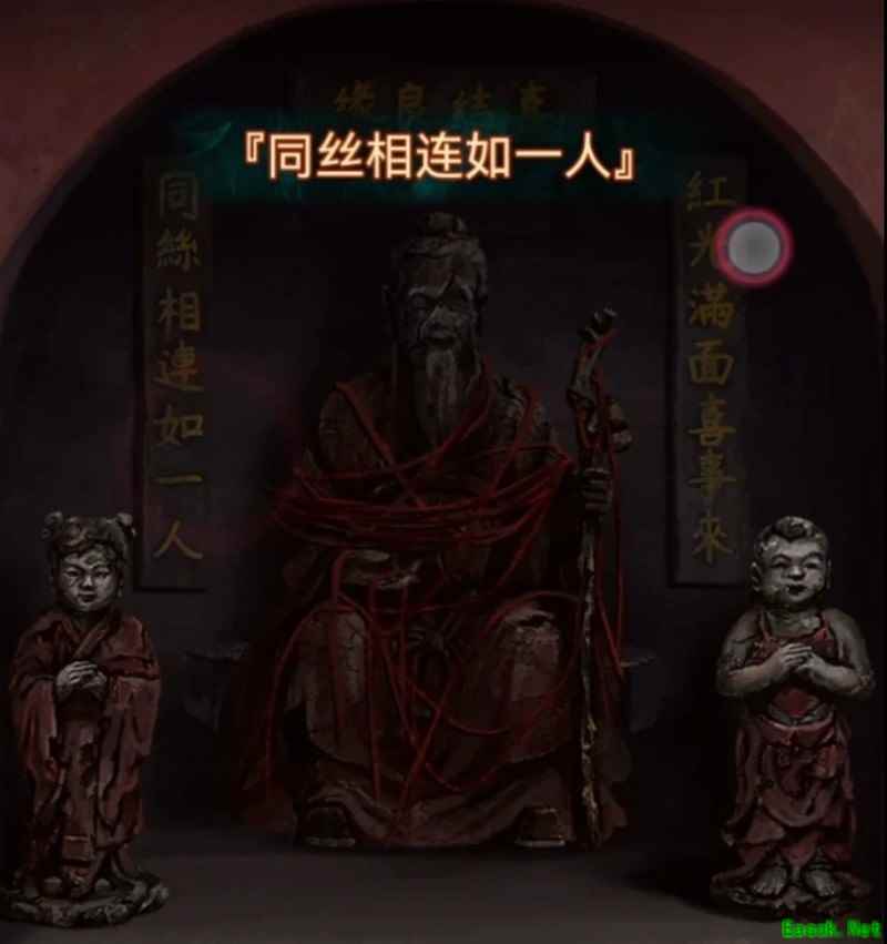 回到冰雪世界,把铁杯交给八不郎换取女童子像,再返回监控室查看左侧的月老雕像。将两个童子像分别放在左右两侧,便会触发一个小游戏。当蜘蛛头部变大时点击一下,主要考验手速,难度不高。完成后可获得一根红绳。所谓红线相连如一体,意味着一个名额可让两人一同离开,真是玩得一手好消除游戏。