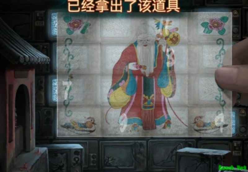 进入佛像下方的门后,会看到只有一台显示器亮着。屏幕上的图案似曾相识,按住图案可以拖动,将其移动到书页对应的位置。电视画面随之发生变化,待画面稳定后,从电视中出现的书包里取出洋娃娃和第二个圆球。
