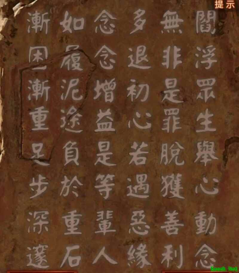 剧情结束后,将石片放到左上角的石碑上,便会进入一个记忆小游戏。这里提供一个小技巧:把上方的图片发送给自己QQ号,再用另一部手机登录QQ接收该图片,随后打开任意一款图片编辑软件,在游戏开始后,找到跳动的字并在其上方标记顺序。完成操作后,石碑会自动裂开,进入其中便能找到女主角。
