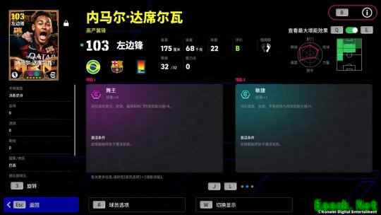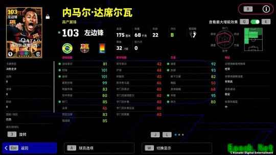 内马尔增能属性为【舞王 +4】,他脚尖轻点、重心摇曳,让防守者在他面前如同笨拙的陪舞!