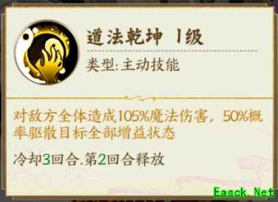 道法乾坤技能可驱散敌方增益状态。