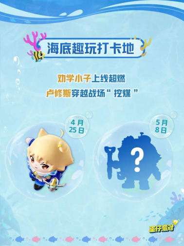 4月30日,国民原创乐园游戏《蛋仔派对》五一版本「海底大冒险」即将快乐启航,期待小蛋仔们一起开启冒险!