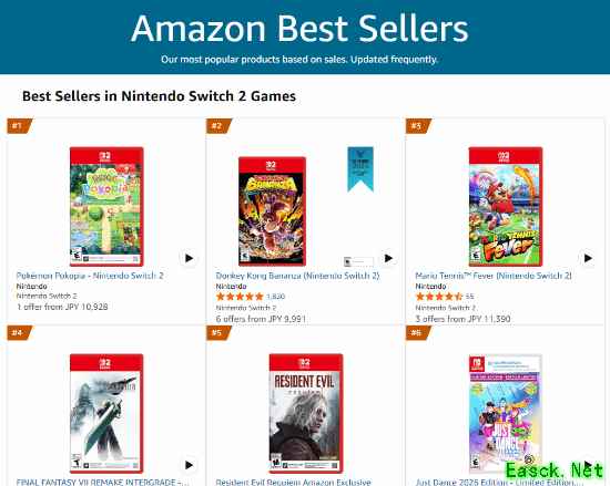 可以看到尽管《生化危机9》近日来火爆异常,但其在亚马逊NS2侧上的销量仍然不敌《宝可梦Pokopia》,并且本作在美区的任天堂eShop上也作为最畅销游戏被放到了首页展出: