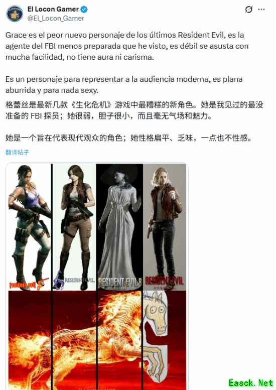 ——“她是整个系列最差的角色。节奏像《生化危机6》:里昂五分钟,格蕾丝三小时。”