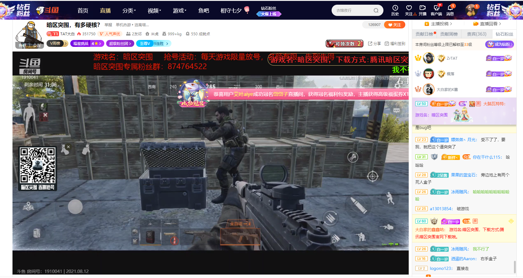《暗区突围》先锋测试火爆开测,FPS知名主播@陈子豪、@狂鸟单身狗、@Anke-Poi、@狂鸟小i海、@走黯、 纷纷直播助阵,与直播间百万水友共同打响暗区突围第一枪!