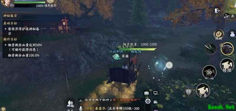 玩家需护送物资前行,途中设有守卫关卡。发现守卫时需暂停前进,点击右下角侦查按钮,锁定敌方首领并伪造身份以通过检查。若伪装失败,必须击败全部敌人,同时确保物资血量不低于50%方可取胜。行进过程中可使用多项技能辅助,包括上下马车、加速行进和修理破损载具,灵活应对各种突发状况,顺利完成押运任务。