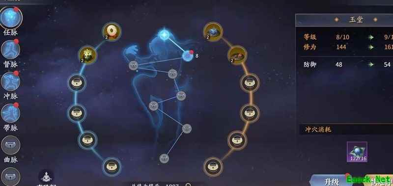 激活经脉穴位可提升血量、防御等属性。建议优先解锁每条经脉的首个穴位,以开启两侧槽位,便于镶嵌奇珍,增强整体实力。