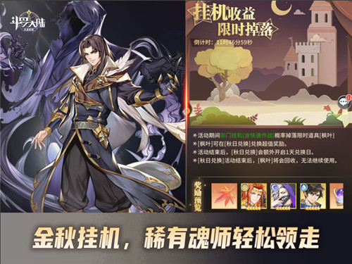 除了领取离线资源的玩法外,《斗罗大陆:武魂觉醒》的维系者这次还有金秋挂机玩法,让大家在休闲中也能把稀有魂师带回家。