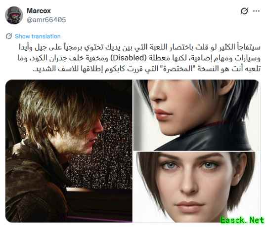 “数据中留有旧内容的片段我并不惊讶。可操控的载具确实存在过——是在后期被删掉的。有些任务在开发的最终阶段被移除了。卡普空经常在制作的最后关头删减元素。因此这类发现完全在意料之中。”