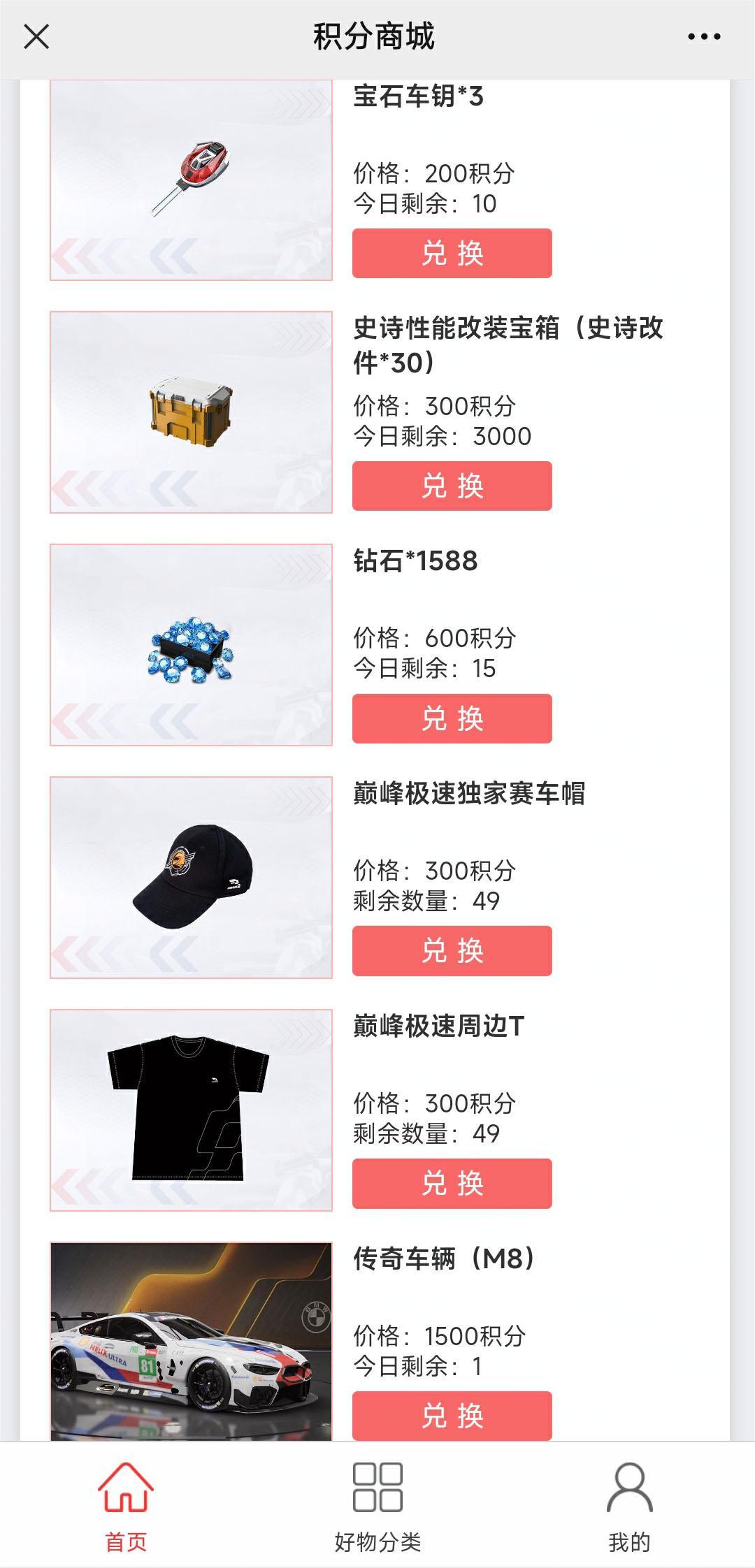 啥都有啥都能换的官方公众号(微信号:dianfengjisu)积分商城,车手们也不要错过了!每日签到、开启宝箱即可获得积分,传奇车辆、外观套件、精美时装,钻石和改装宝箱等你来免费兑换!