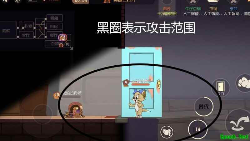 图茨用6.8秒跑完餐厅,以杰瑞为参照对比速度。