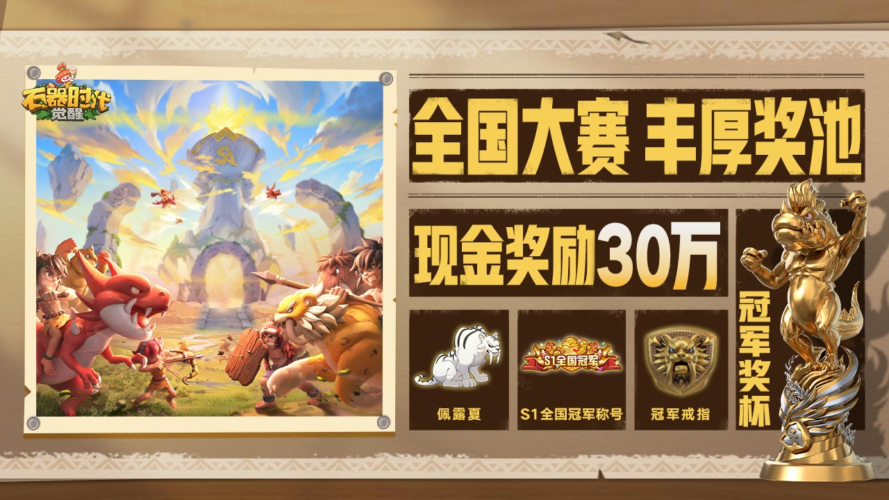 《石器时代:觉醒》自上线以来,一直被玩家所喜爱。这不仅是因为正版授权,更多的是《石器时代:觉醒》一直在为提升用户体验而不断的努力。为了让石器玩家享受更好的赛事体验,《石器时代:觉醒》策划开启了游戏的首次全国大赛S1,并准备30万现金作为赛事奖励!