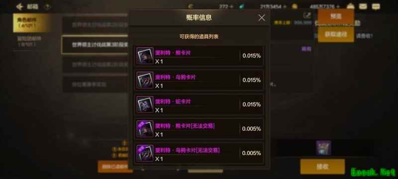 卡包中可能获得全新世界BOSS专属卡片,三阶段卡包开出的概率约为万分之六。