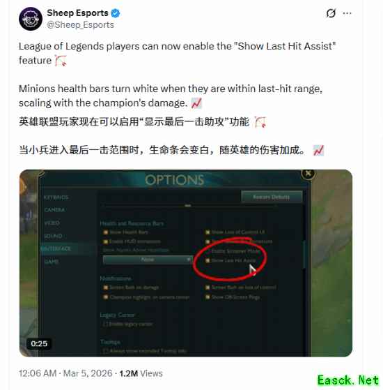 对于很多《英雄联盟》玩家来说,补刀是基本功和入门难题,经常出现无法精准补到小兵的情况。据悉,《英雄联盟》26.5版本将新增“吃兵辅助功能”,帮助新手和低熟练度玩家解决这一问题,避免游戏中手忙脚乱。