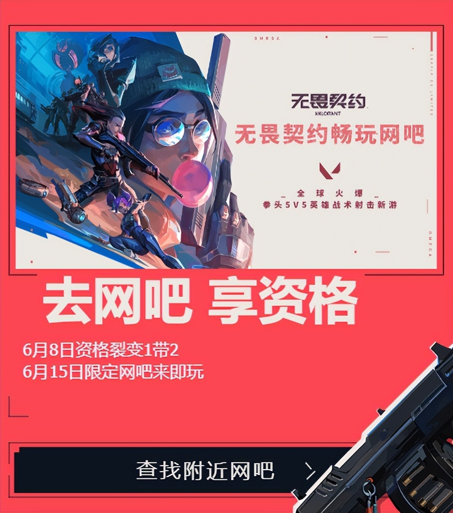 其次拥有永久资格的玩家,从6月8日开始起,可以通过《无畏契约》官网邀请2名好友前往指定网吧组队游玩。